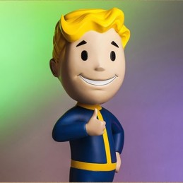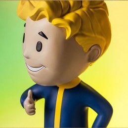 Le Vault Boy 111 Charisma Mega Bobblehead est fabriquée en résine polystone et est représenté dans sa pose emblématique en version Mega de 38 cm et Bobblehead (tête sur un ressort)